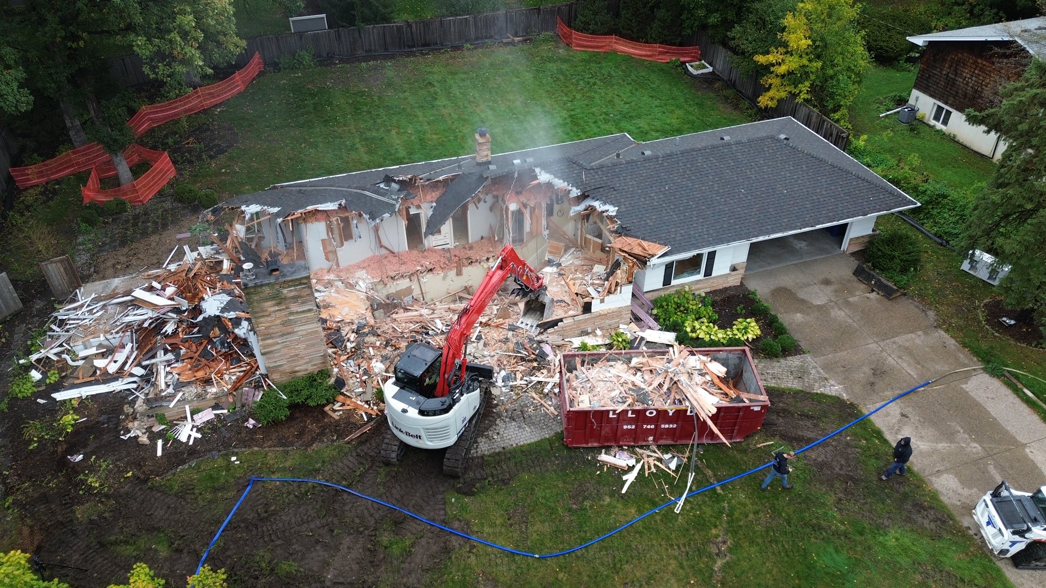 Demolishing a home in a dense Edina neighborhood requires strict control. For this project, the builder needed a total reset—not just a teardown. We executed a safe, mechanical demolition, pulling the structure inward to ensure nothing crossed the tight property lines.